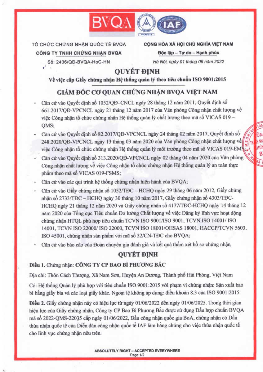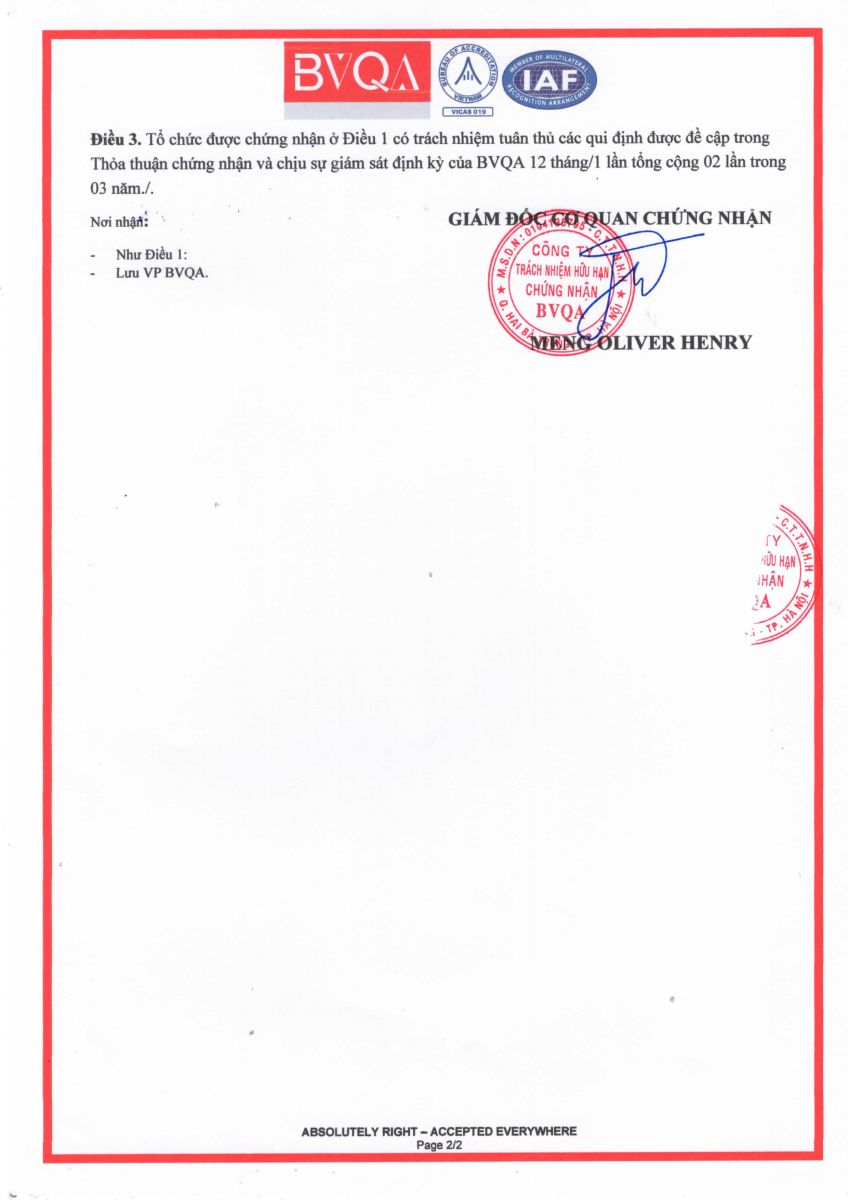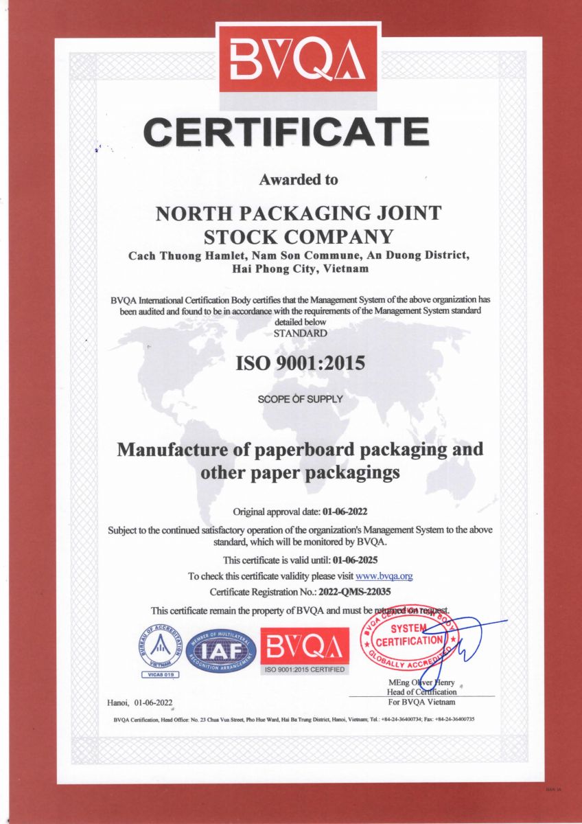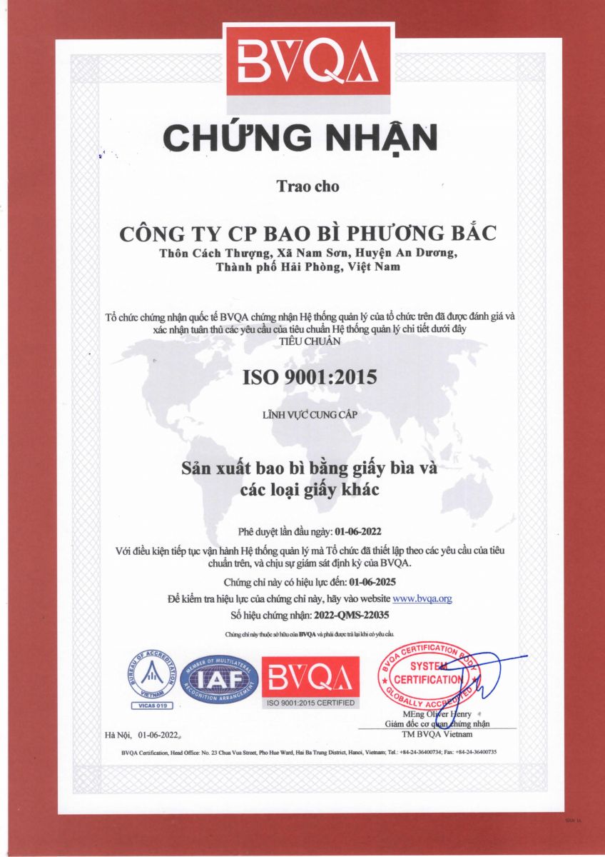 Chứng chỉ ISO 9001-2015